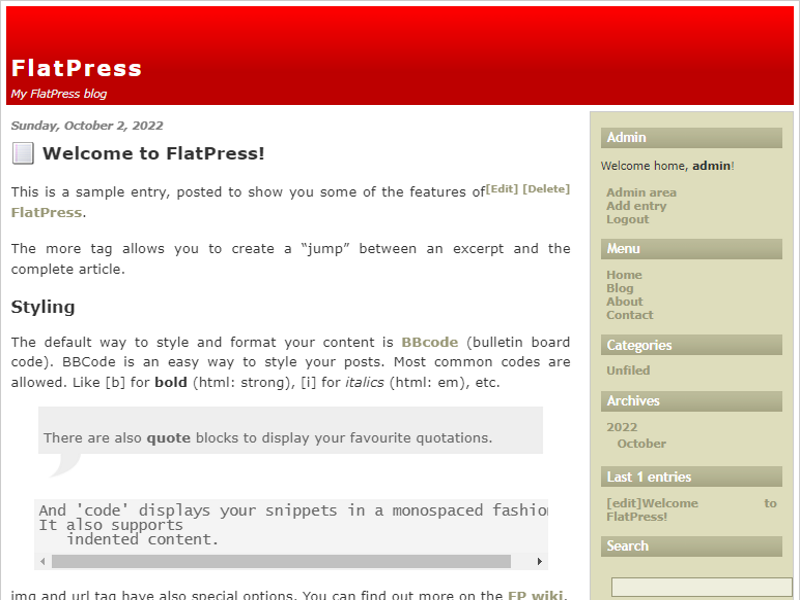 Dit is een voorbeeld vermelding, om je enkele functies te tonen van FlatPress.